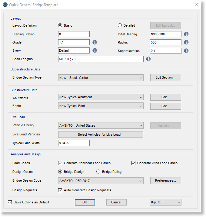 - 根據(jù)最新的新西蘭規(guī)范NZTA BM 3.4自動創(chuàng)建橋梁設計荷載組合