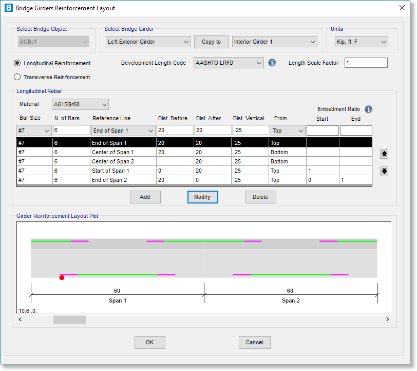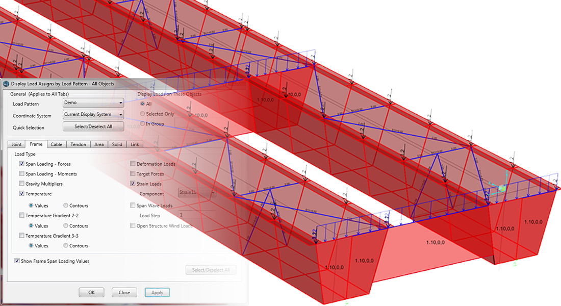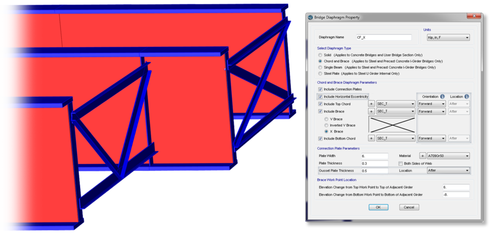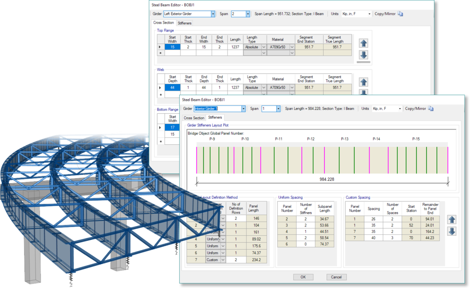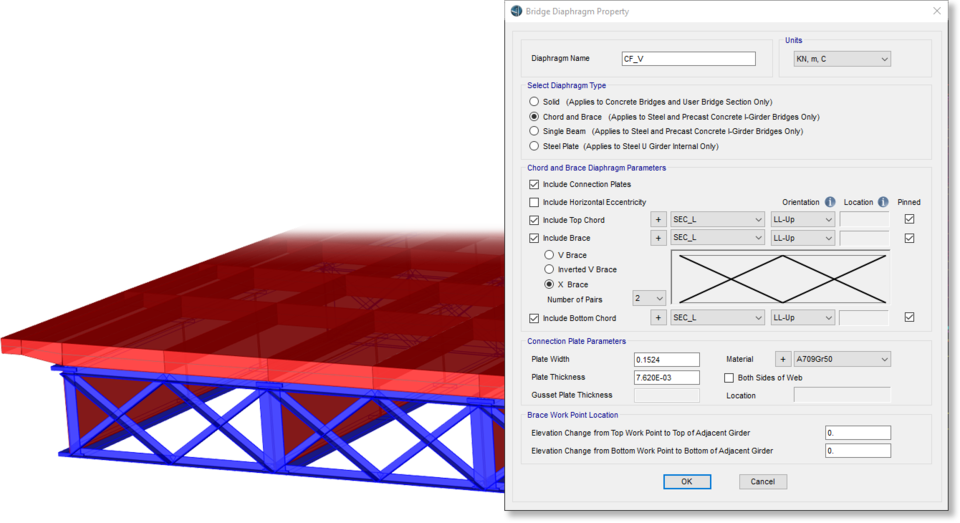 - 橋梁建模器現(xiàn)在可以為鋼混組合梁橋指定多對交叉支撐