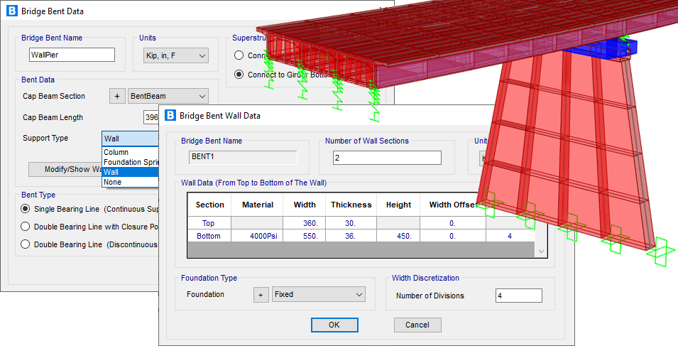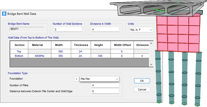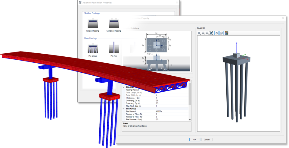 - 通過Bridge建模器可在橋墩底部定義詳細的