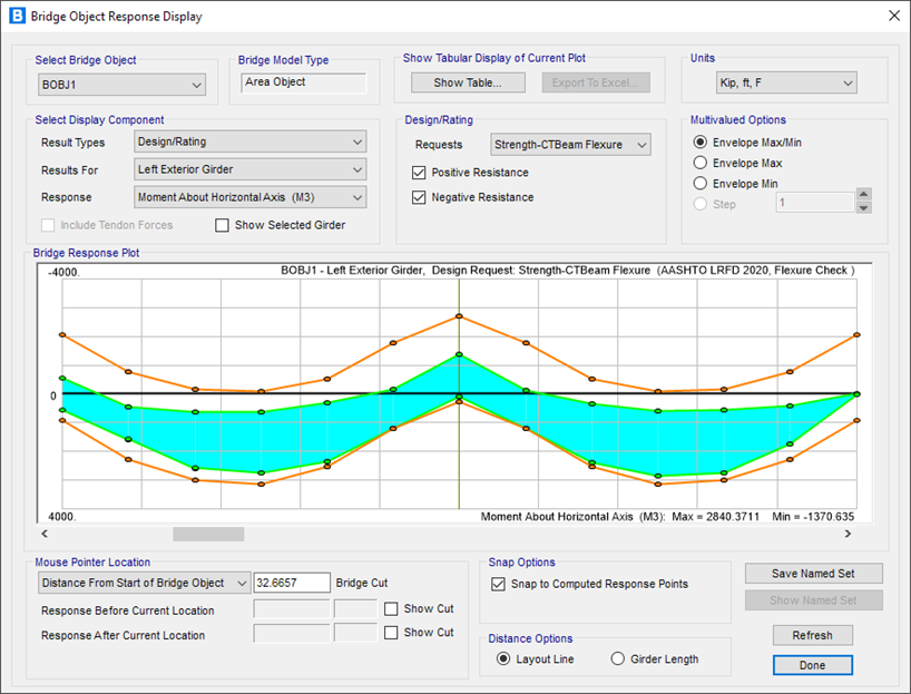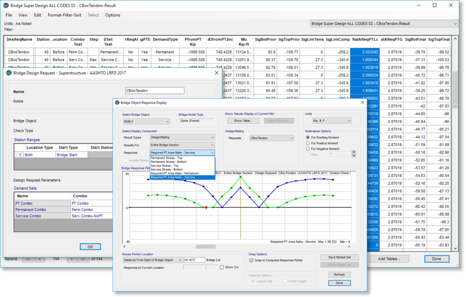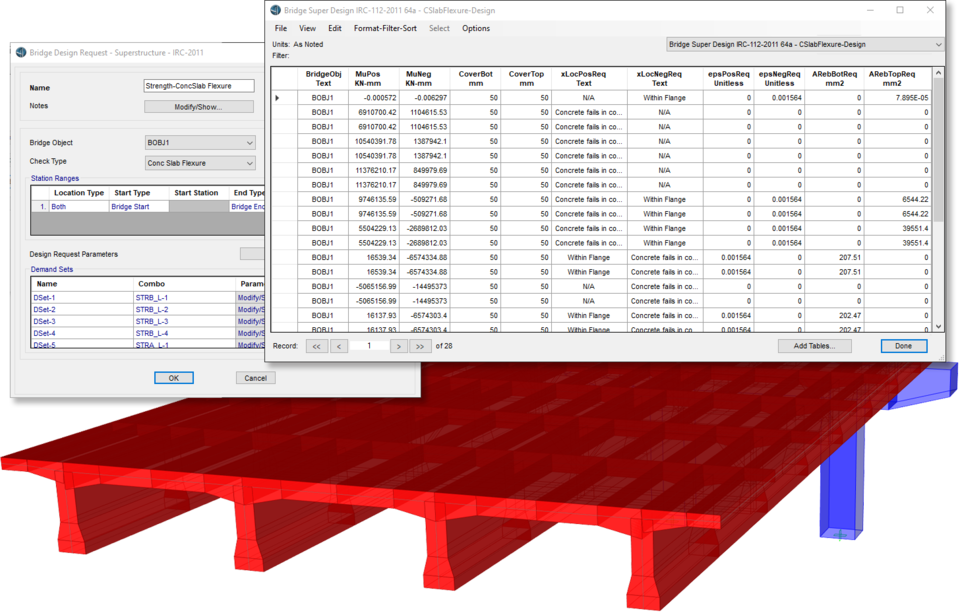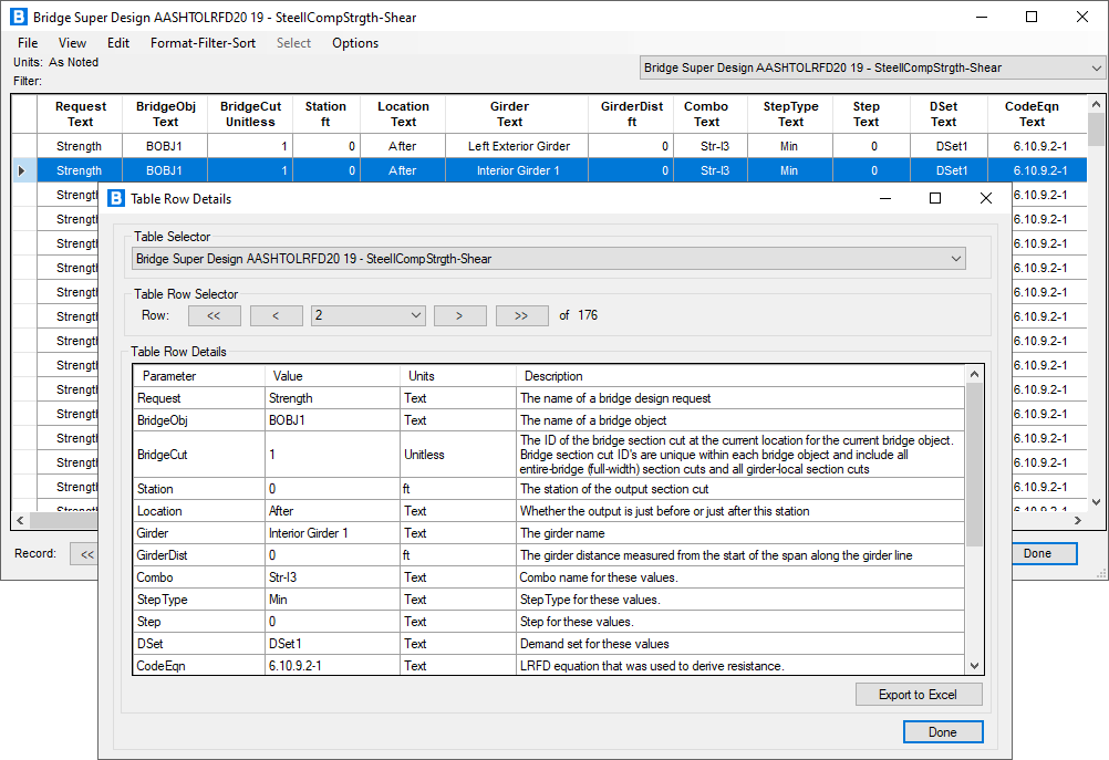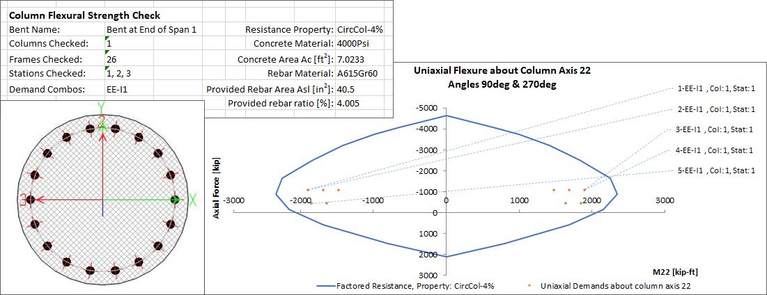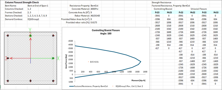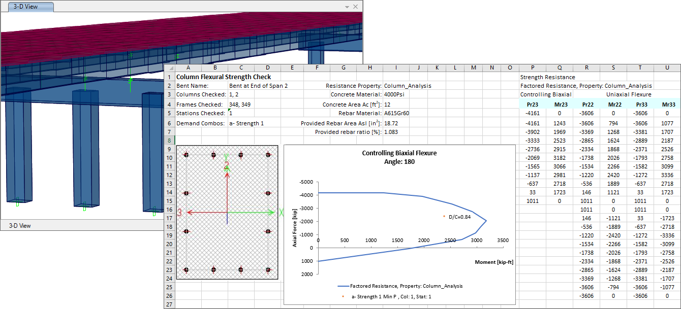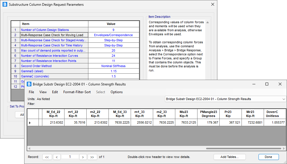 - 新增基于美標AASHTO LRFD 2020的下部結(jié)構(gòu)(墩柱)強度設計功能。用戶可根據(jù)需要定義一個或多個設計需求,用以控制下部結(jié)構(gòu)的強度設計。此處的設計需求為荷載組合、墩柱、測站以及其他參數(shù)的集合。每個設計需求的設計結(jié)果都以Excel表格的形式呈現(xiàn),便于后續(xù)的二次計算和報告整理。此外,設計結(jié)果也可以采用數(shù)據(jù)庫表格的形式顯示、導出或生成報告。