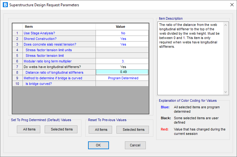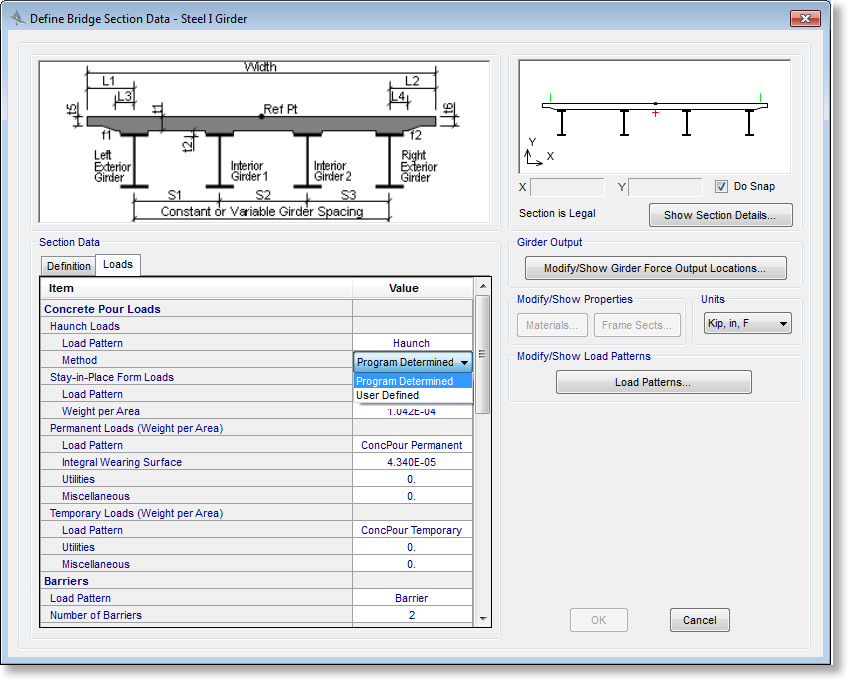 - 在運行分析、設計或評估之前可指定I型鋼混組合梁橋
