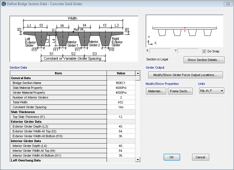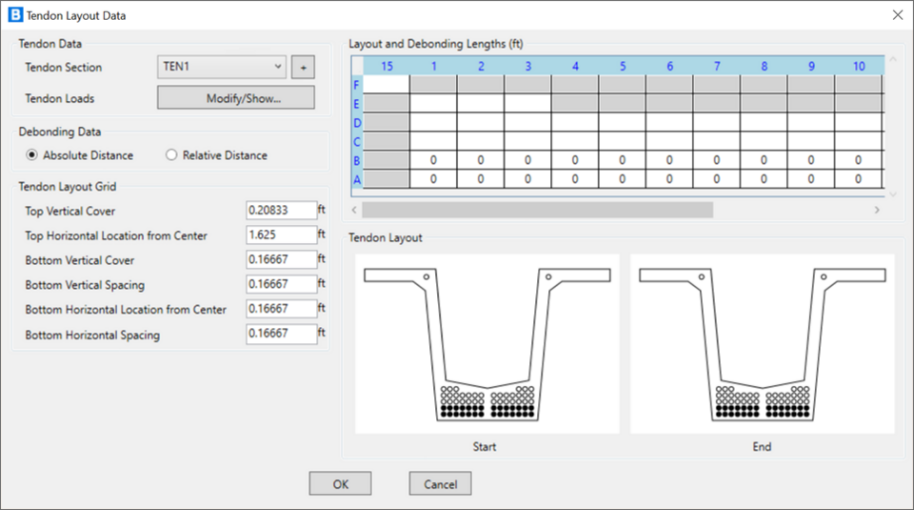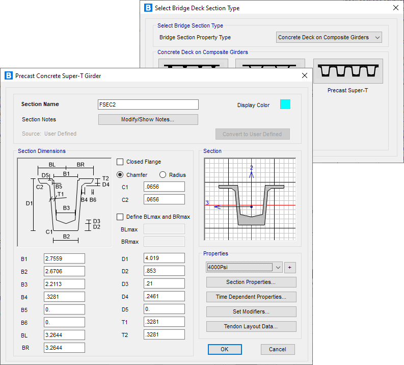 - 對于預制混凝土 I 型梁和混凝土 T 梁,用戶可以定義橋梁橫隔板的高度。