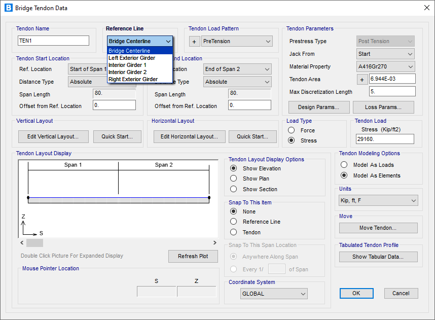 - 可直接將任意一個主梁或是橋梁布局線設為參考線
