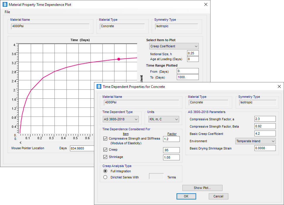 - 新增基于澳大利亞規(guī)范AS3600-2018的混凝土時變屬性