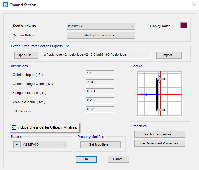 - 針對槽形截面和通用截面,新增關于剪切中心的控制選項。默認情況下,SAP2000中文版考慮剪切中心偏移造成的主彎矩、剪力V2和扭矩之間的耦合效應。當然,用戶也可以根據(jù)需要關閉該選項