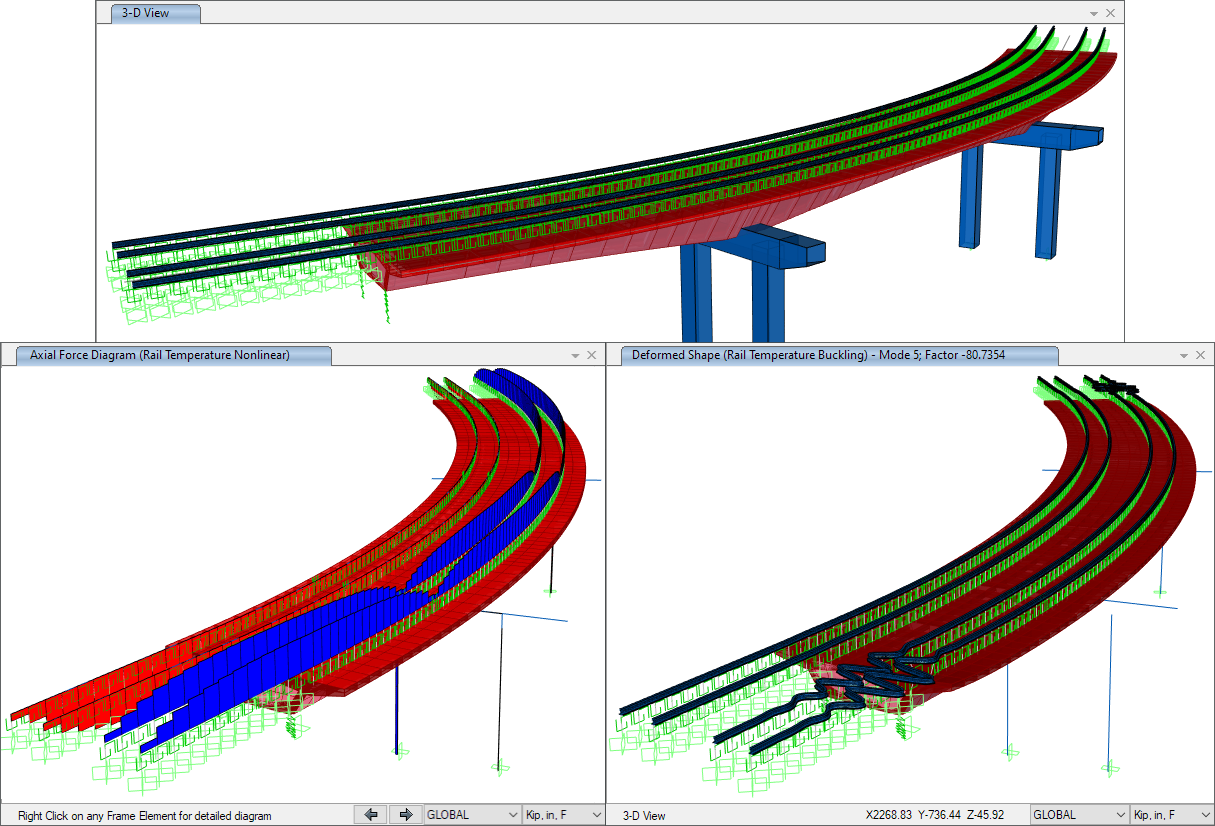 - 新增施加于鐵軌并沿軌道長度變化的溫度荷載。用戶可利用非線性分析計算軌道支座處的滑移,也可以計算軌道在溫度載荷作用下的線性或非線性屈曲。