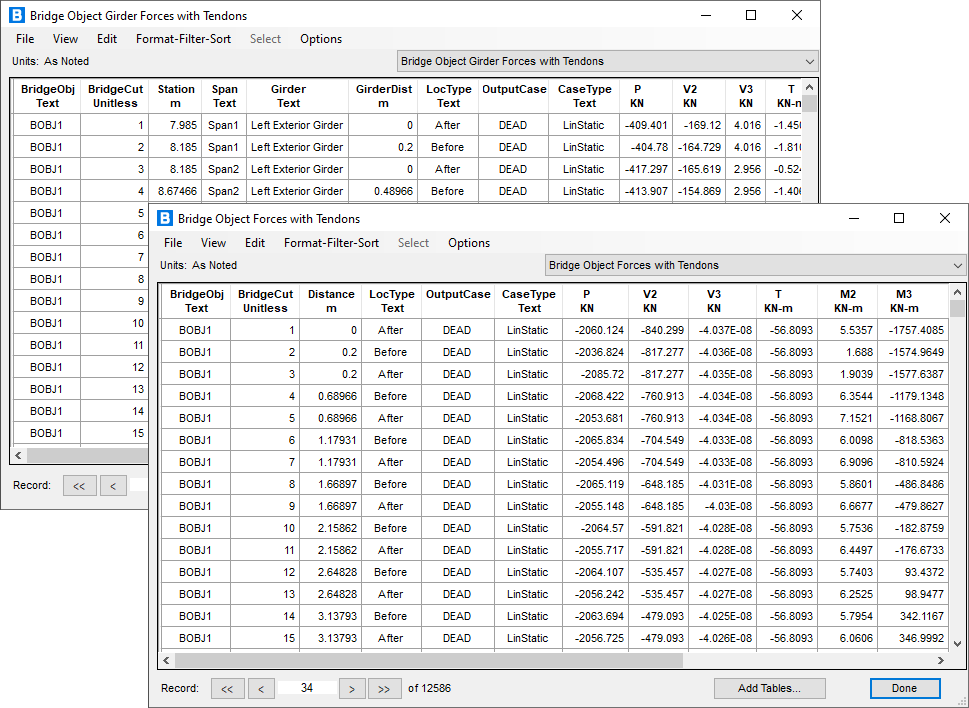 - 新增數(shù)據(jù)庫表格“Bridge Object Forces with Tendons”和“Bridge Object Girder Forces with Tendons”,用于輸出主梁全截面和單片主梁的二次預應力。
