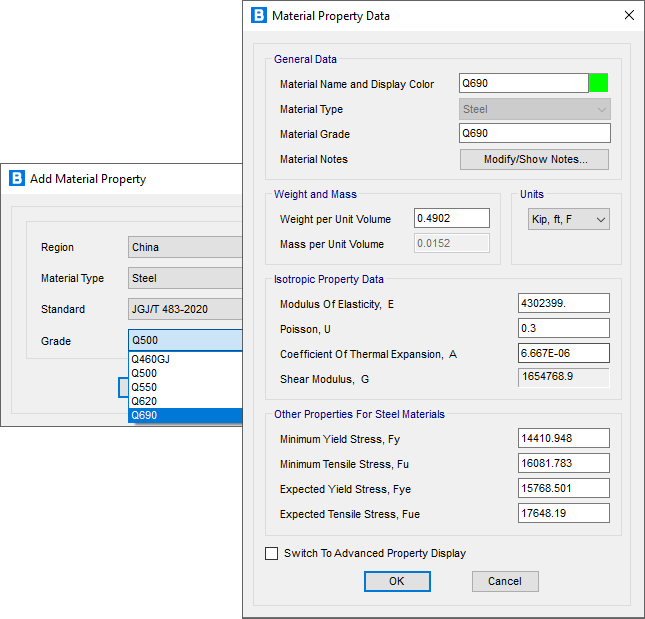 - 新增基于《高強鋼結(jié)構(gòu)設計標準JGJ/T483-2020》的高強鋼材Q500、Q550、Q620、Q690、Q460GJ。