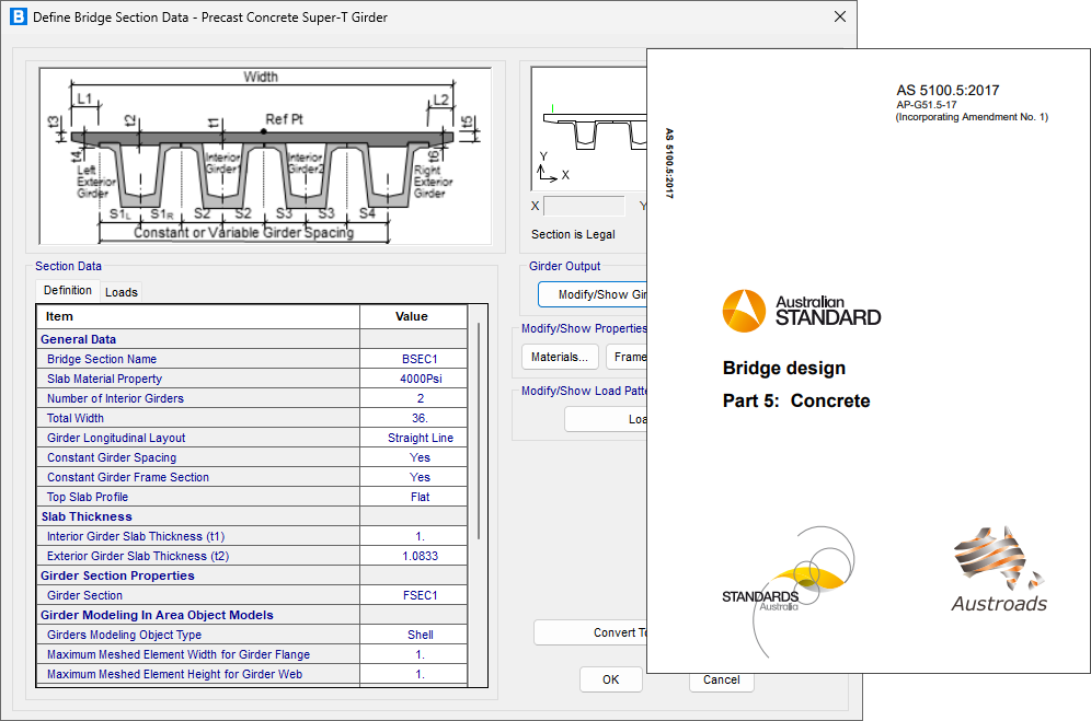 - 新增基于澳大利亞規(guī)范AS 5100.5:2017的預制混凝土I型梁橋、U型梁橋、箱梁橋、Super-T梁橋的上部結(jié)構(gòu)設計功能。