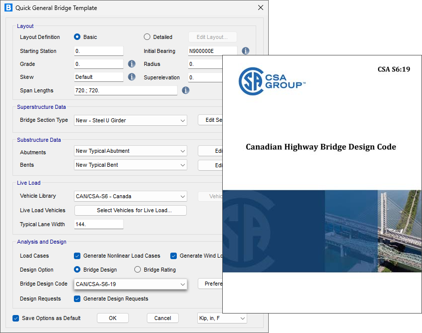 - 新增基于加拿大規(guī)范CAN/CSA S6-19 的橋梁上部結(jié)構(gòu)設計和評估功能
