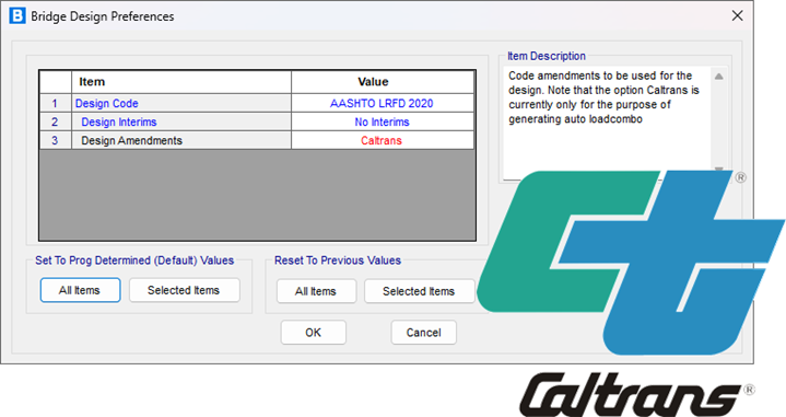 - 在鋼橋和混凝土橋的設計和評估中新增加州修訂選項,用于考慮加州對第8版AASHTO LRFD橋梁設計規(guī)范的內(nèi)容修訂