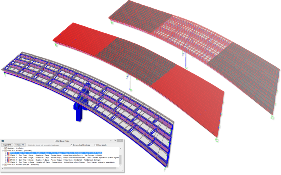 - 鋼混疊合梁施工階段模擬中新增橋面板澆筑的模擬(橋面板有重力沒有剛度)。