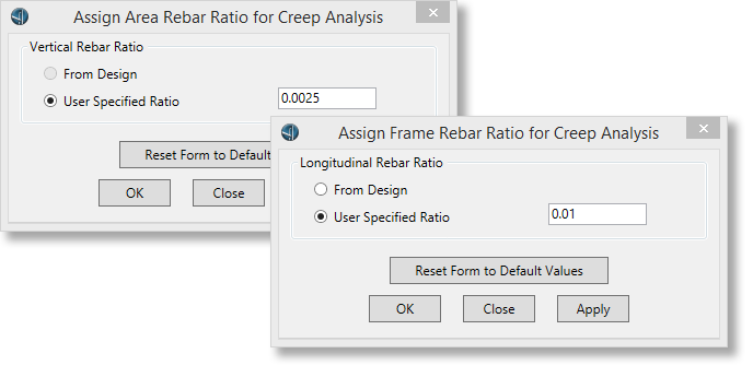 - 在分階段施工分析中,增加了指定混凝土柱和墻的鋼筋功能,用于考慮鋼筋對構(gòu)件徐變和收縮的影響。