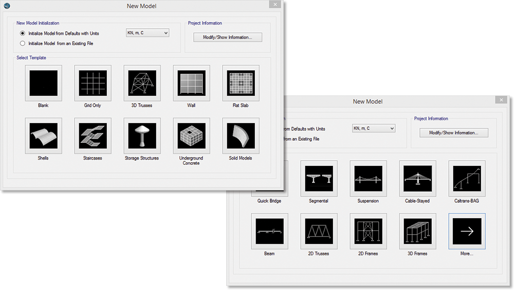 - 快速橋梁模板當中包含了更多內(nèi)容,可以定義更完整的模型,包含了上部結(jié)構(gòu)、下部結(jié)構(gòu)、荷載和設計規(guī)范。