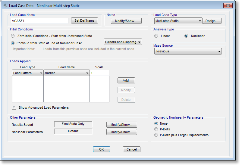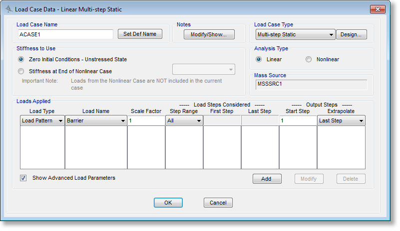 - 在非線性多步靜力荷載工況中可以選擇高級荷載參數(shù)選項