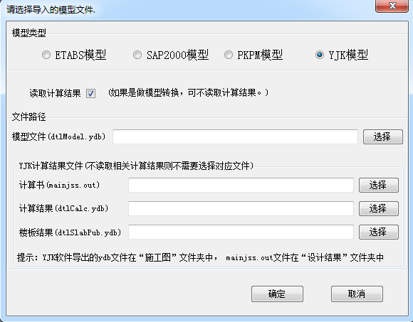 - 模型導(dǎo)入提供SAP2000中文版(*.s2k)、ETABS中文版(*.e2k)、PKPM(*.PDB)和YJK(*.YDB)四種文件的導(dǎo)入