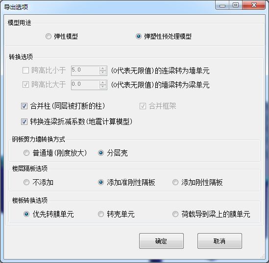 - 選擇彈塑性預(yù)處理模型時合并框架梁選項(xiàng)不能修改;