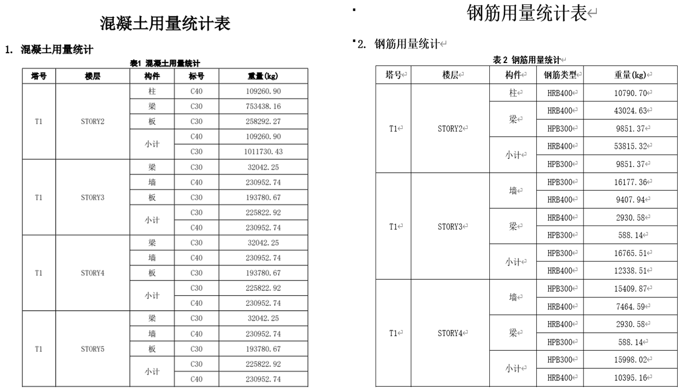 - 報告書中新增鋼材構(gòu)件的統(tǒng)計(jì)