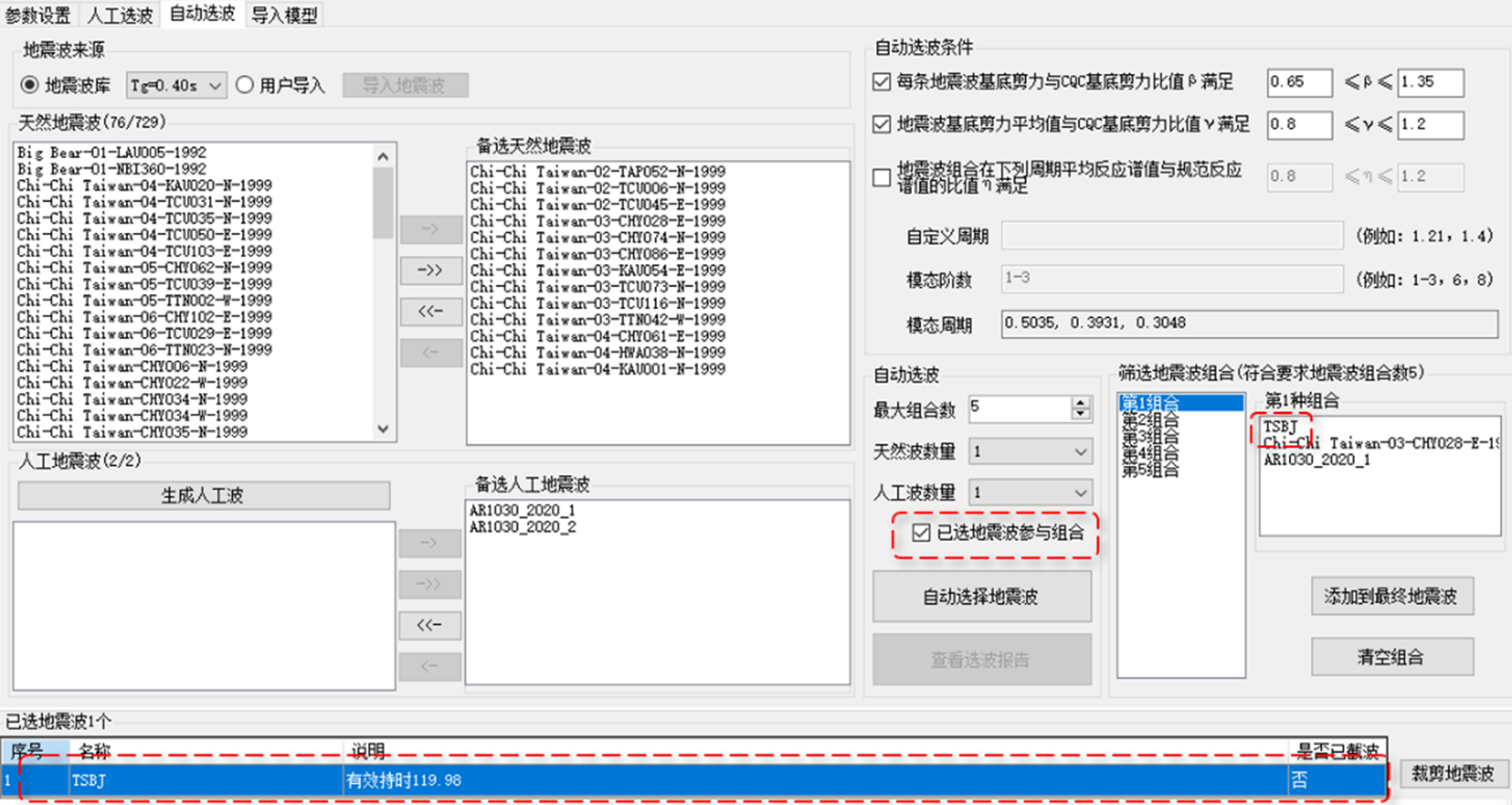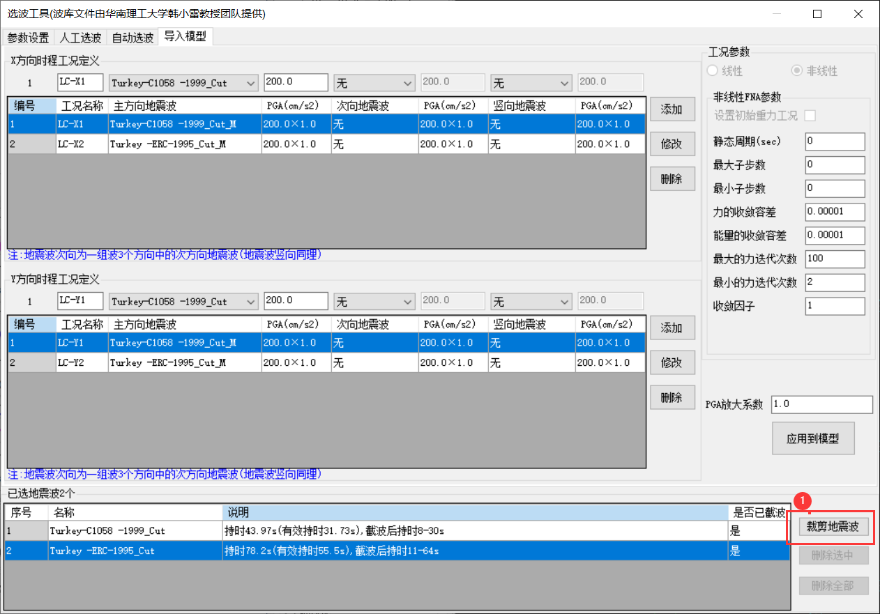 - 調(diào)整國標(biāo)模塊彈塑性選波和工具中選波的參數(shù)可以共用