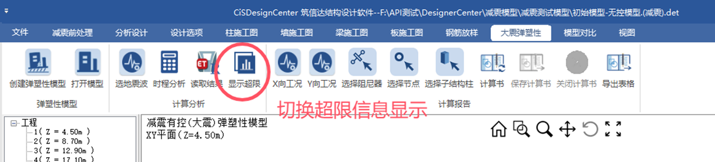 - 隔震模塊和減震模塊增加“顯示超限信息”選項(xiàng),便于用戶查找超限構(gòu)件并進(jìn)行修改。