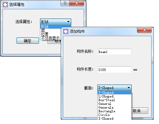為了方便構(gòu)件管理,用戶可根據(jù)形狀、位置、樓層等屬性對構(gòu)件進(jìn)行分類。通過調(diào)用已有的柱截面屬性,用戶可以快速完成構(gòu)件的定義。