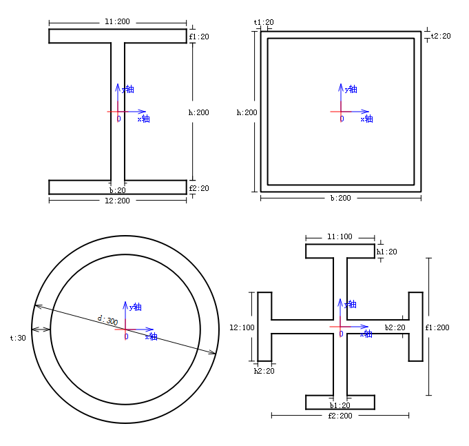 包括矩形、圓形和工字形截面。