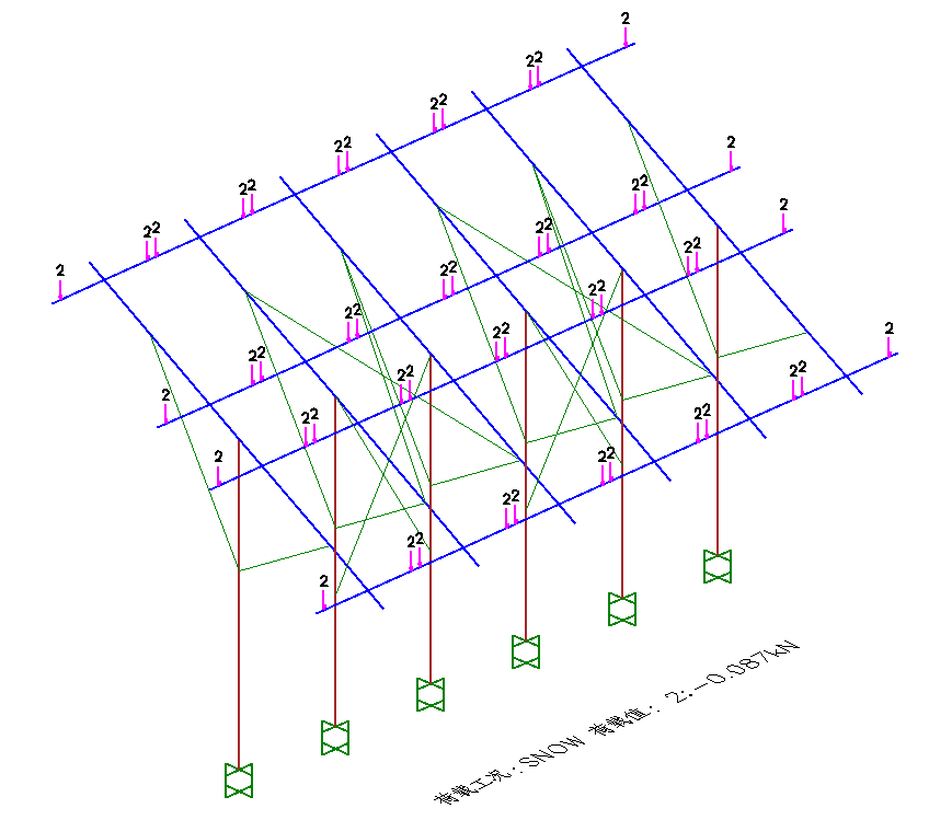 光伏支架結(jié)構(gòu)中的主要荷載是組件荷載、風(fēng)和雪荷載,組件荷載在參數(shù)話建模中進(jìn)行指定,風(fēng)和雪的參數(shù)在工程信息中進(jìn)行輸入,荷載的具體計(jì)算是根據(jù)《光伏支架結(jié)構(gòu)設(shè)計(jì)規(guī)程》中的相關(guān)條文進(jìn)行進(jìn)行計(jì)算,并將荷載施加到檁條上,荷載的具體計(jì)算過(guò)程可以在計(jì)算書中查看,荷載值可以直接在軟件中查看。