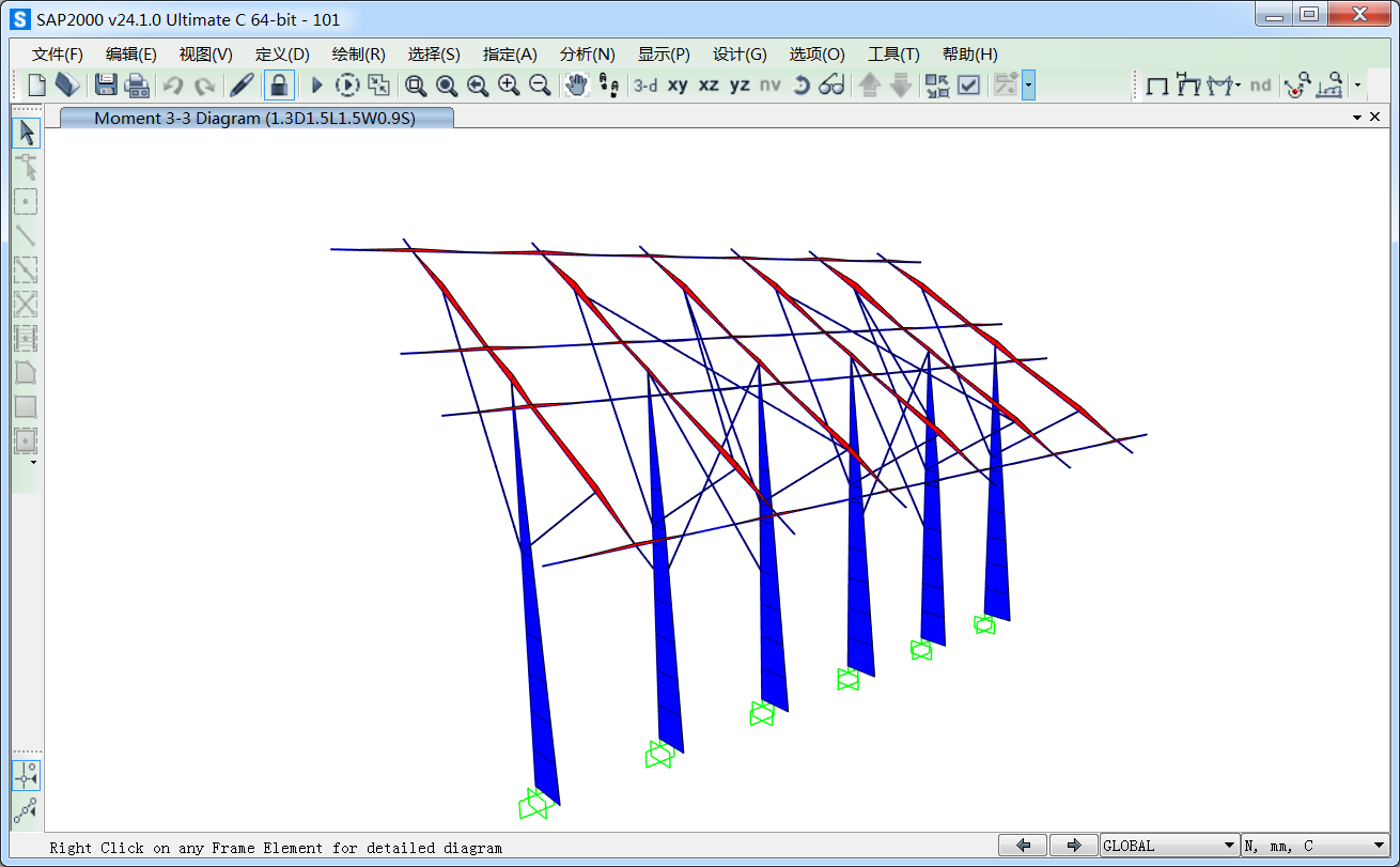 圖8 SAP2000中文版模型內(nèi)力顯示