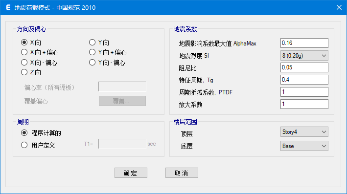 當(dāng)荷載模式類型選擇地震荷載時(shí),程序提供了各種自動(dòng)側(cè)向荷載規(guī)范。選擇相應(yīng)的規(guī)范后,用戶可以查看或者修改地震荷載模式對話框中默認(rèn)的參數(shù)和選項(xiàng)。