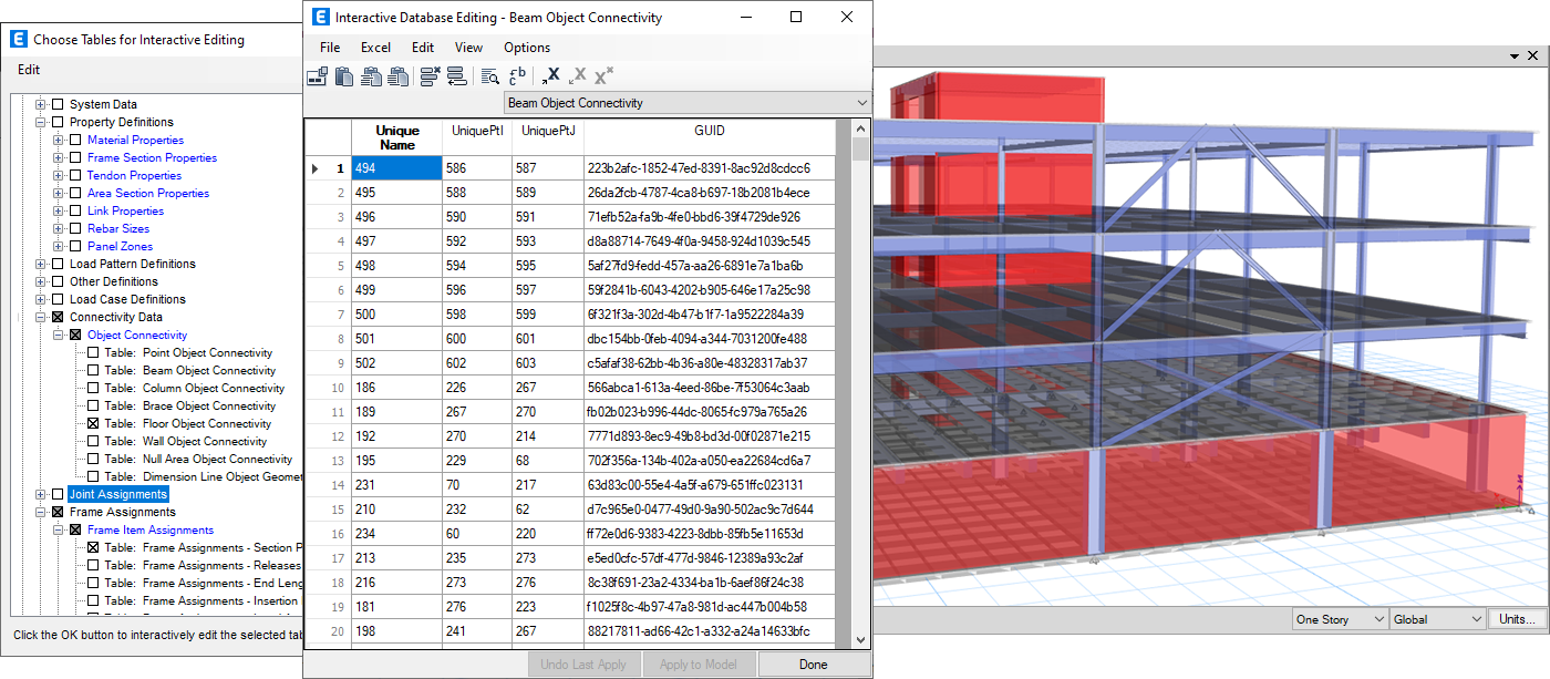 CSI 軟件將模型數(shù)據(jù)和其他信息存儲(chǔ)在數(shù)據(jù)庫(kù)表中,用戶可以通過(guò)交互式數(shù)據(jù)庫(kù)編輯直接進(jìn)行編輯。這一強(qiáng)大的功能可以幫助用戶快速建立或編輯模型。