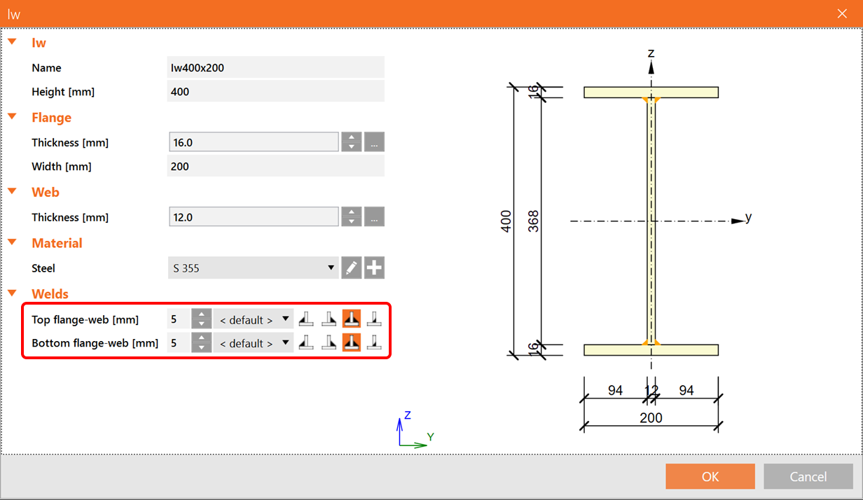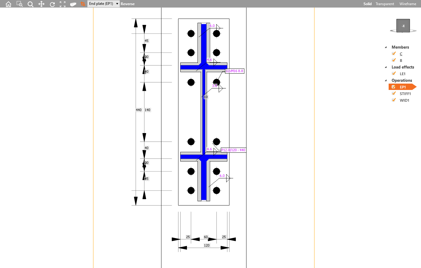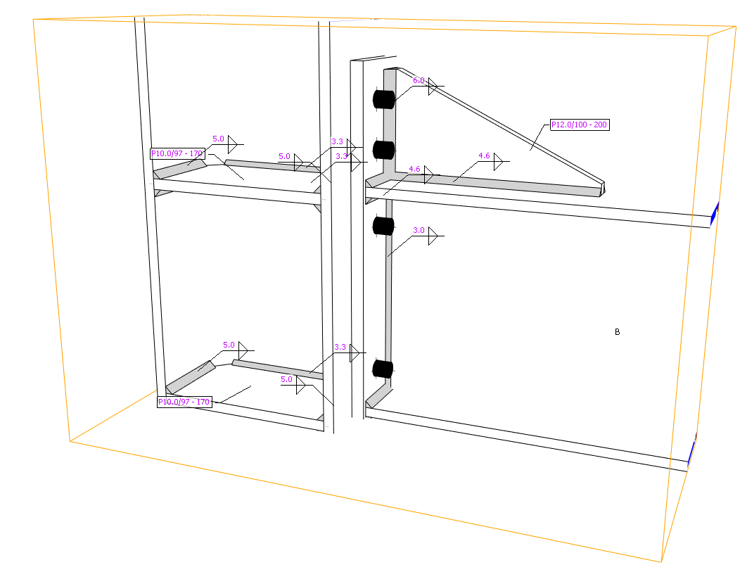用戶可根據(jù)需要定義任意范圍和大小的剖面視圖,形象直觀地標識焊縫尺寸以及板件厚度。模型剖面視圖既可直接打印出圖,也可以插入計算報告或備份至圖庫。