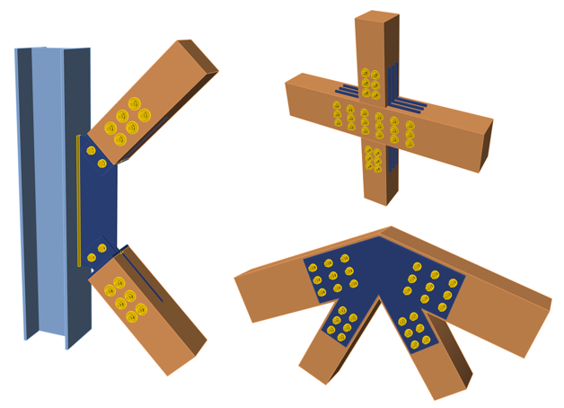 支持木構(gòu)件與木構(gòu)件或木構(gòu)件與鋼構(gòu)件之間的混合節(jié)點,同時新增與之相關(guān)的模型模板和加工操作,但 IDEA 并不會校核木構(gòu)件。