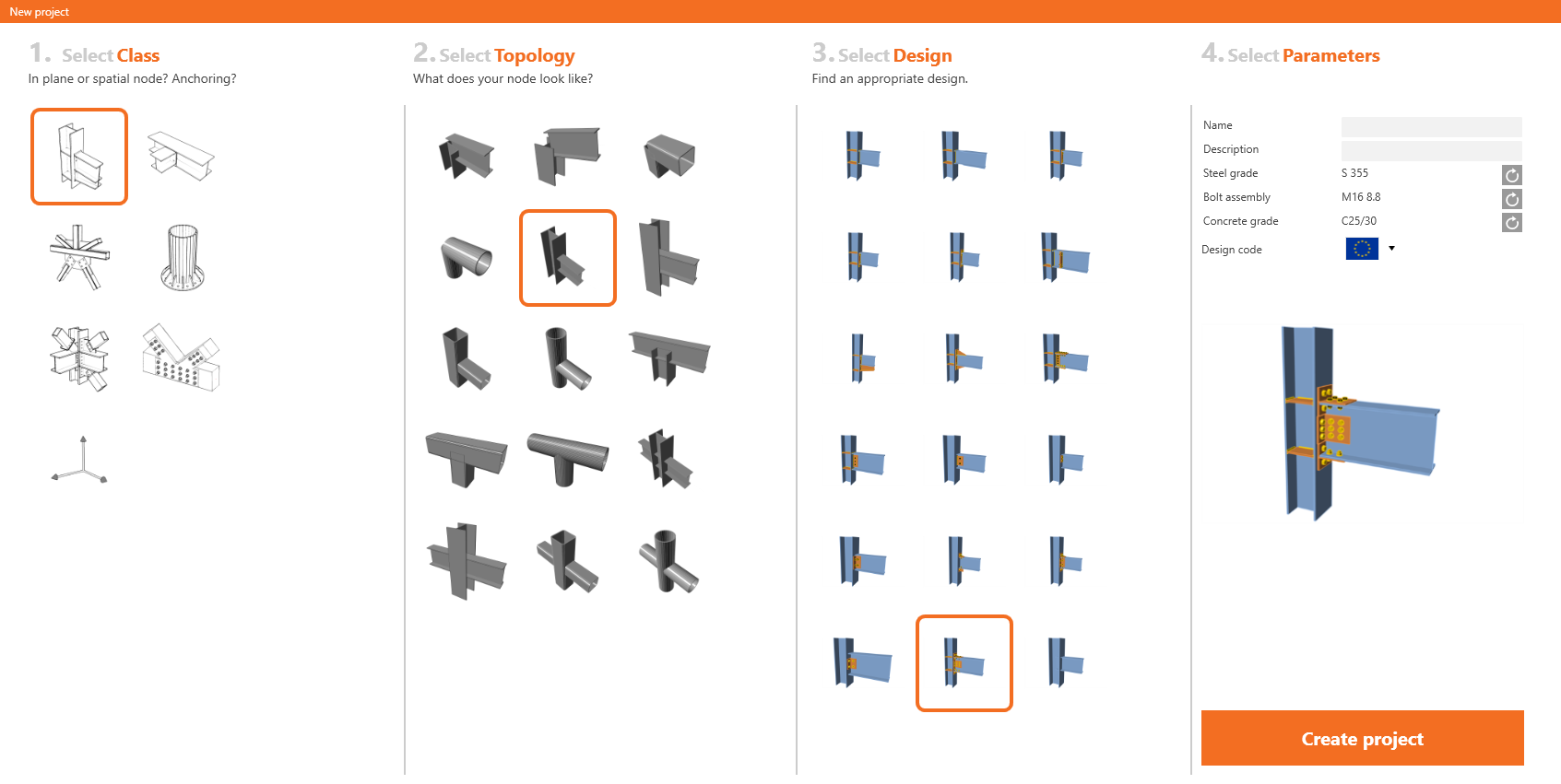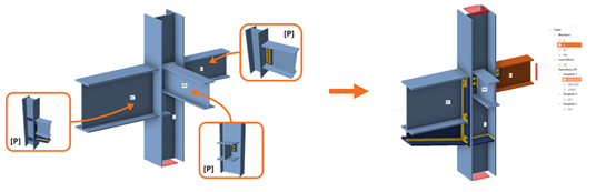 在幾何建模向?qū)е行略龀^110種模板,進一步幫助用戶高效便捷地創(chuàng)建復(fù)雜的鋼結(jié)構(gòu)節(jié)點模型。