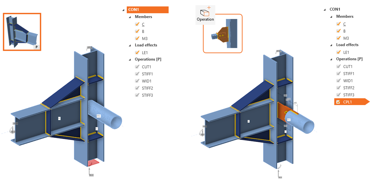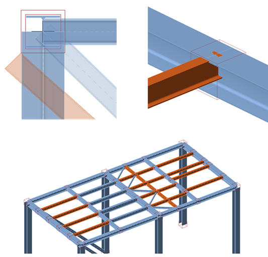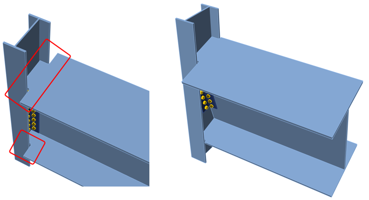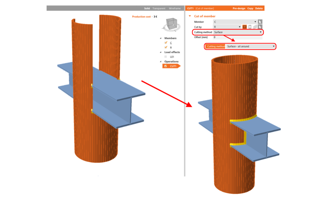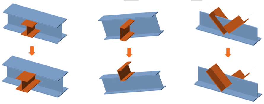 針對構(gòu)件與圓鋼管或方鋼管之間的完全貫穿,新增的切割方法“表面-全部(Surface-all around)”可以更好地處理切割過程中產(chǎn)生的開孔和焊縫。