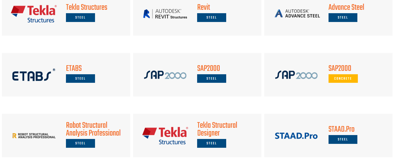 支持最新版本的SAP2000中文版、ETABS中文版、MIDAS、STAAD.Pro、Revit和Tekla。