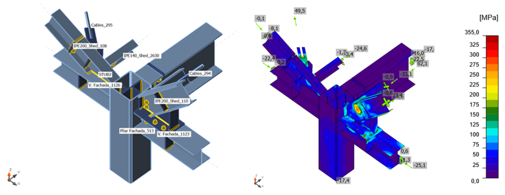 合并FEA模型中的鄰近節(jié)點,處理偏心連接的支撐桿件。
