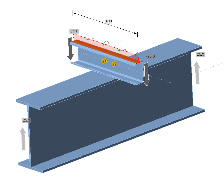 新增的“側(cè)扭約束”操作可用于考慮梁或檁條的側(cè)向支撐,限制側(cè)向扭轉(zhuǎn)變形并消除非對稱截面的非預(yù)期扭轉(zhuǎn)。