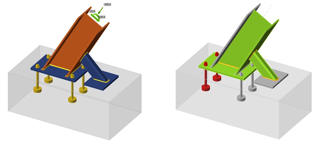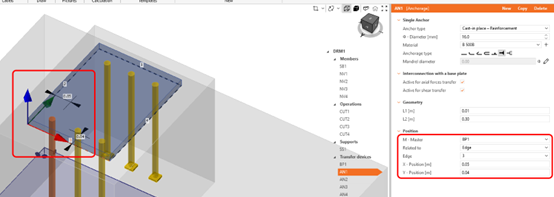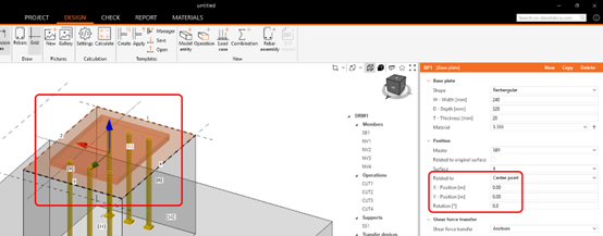 關(guān)于底板、錨栓、支座以及點荷載的定位,新增基于局部坐標系和主控對象中心點的選項。利用該選項,不僅可以采用更加直觀簡捷的建模方式,也便于后續(xù)調(diào)整幾何模型或幾何模型的自動更新。
