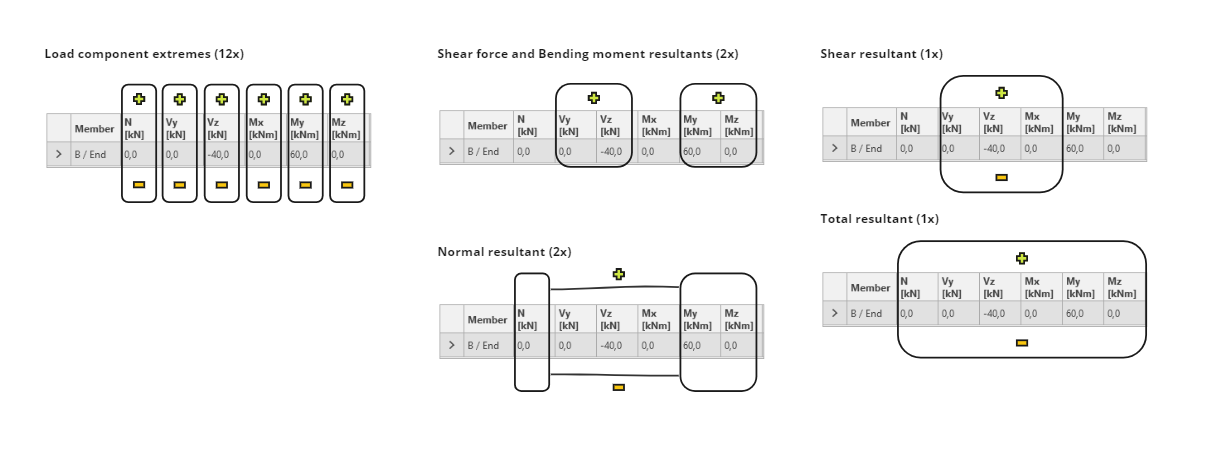 綜上,理論上每個構(gòu)件存在18個控制組合,交于同一節(jié)點的n個構(gòu)件則有18n個控制組合。不過,考慮到荷載組合的重復(fù)性,實際計算的組合數(shù)量遠遠小于18n。