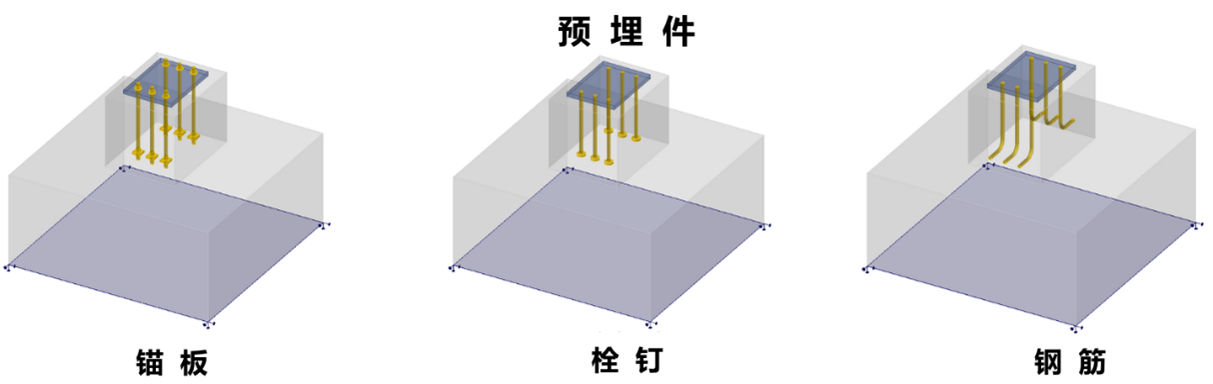 利用新增的【預(yù)埋板】加載裝置,用戶可自定義預(yù)埋的直鋼筋、 L 形或U 形鋼筋布置。