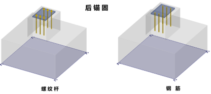 根據(jù)錨栓的安裝過程(預(yù)埋件和后錨固),三維鋼筋混凝土構(gòu)件的錨栓類型細分為五種。預(yù)埋件錨栓可選用錨板、栓釘或鋼筋;后錨固錨栓可用于化學錨栓或植筋的承載力校核,用戶需要手動輸入錨固膠的粘結(jié)強度。