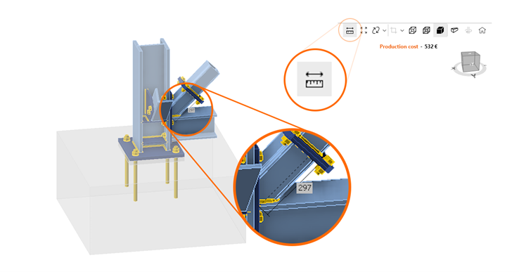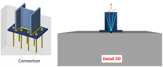 用戶在Connection中可以直接將鋼節(jié)點模型 “分享”至云服務(wù)Viewer。針對復(fù)雜的鋼結(jié)構(gòu)節(jié)點,Viewer 3D顯示性能提升十倍以上,同時支持查看更多的模型信息,如:錨固混凝土塊、抗剪鍵以及錨栓屬性。