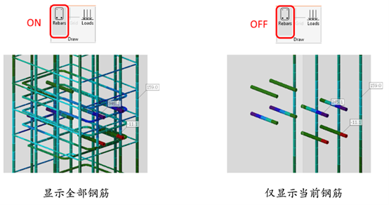新增的鋼筋顯示開關(guān)可用于控制全部鋼筋和當前鋼筋的快速切換。