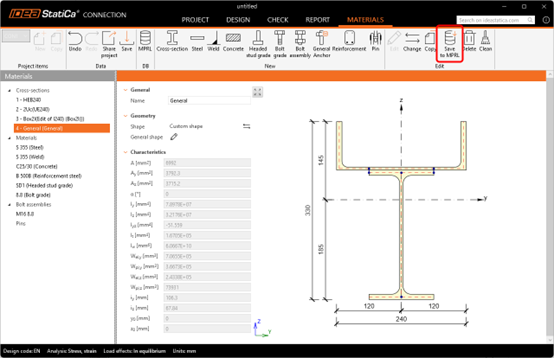 除材料和螺栓組外,用戶也可以將自定義截面保存至 MPRL 庫,以便在后續(xù)項目中重復(fù)使用。