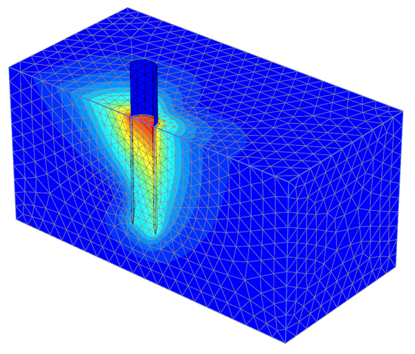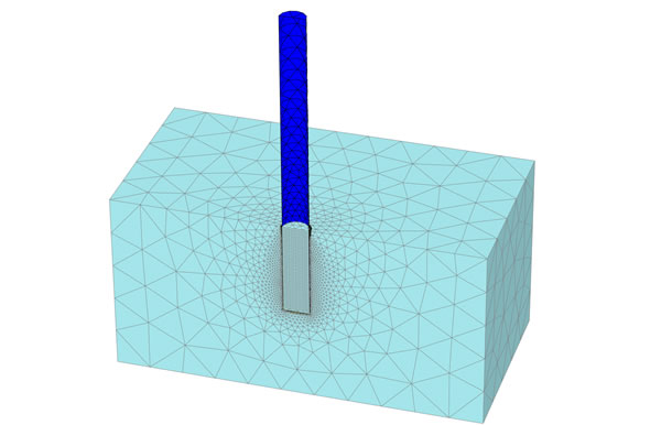 PLAXIS MoDeTo采用一維的鐵木辛柯梁?jiǎn)卧M并計(jì)算大直徑單樁在側(cè)向荷載作用下的承載力,同時(shí)基于p-y方法的常規(guī)假定計(jì)算實(shí)際的土體反力曲線。研究表明,采用優(yōu)化的單樁設(shè)計(jì)方法可以有效減少高達(dá)50%的單樁嵌入深度。