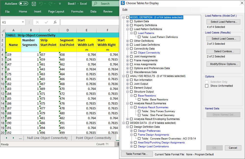 在SAFE中文版用戶界面中以表格格式查看包含所有輸入數(shù)據(jù)、分析結(jié)果和設(shè)計(jì)結(jié)果的數(shù)據(jù)庫(kù)表。 用戶可以對(duì)表格數(shù)據(jù)進(jìn)行過(guò)濾、排序和查詢,并將數(shù)據(jù)打印或保存為Microsoft Access、Excel、HTML 或文本格式。