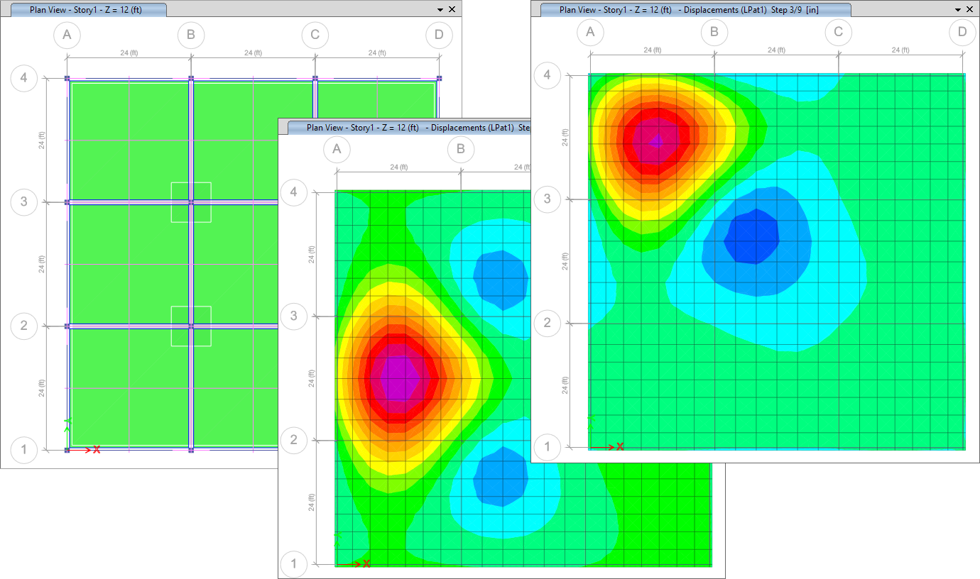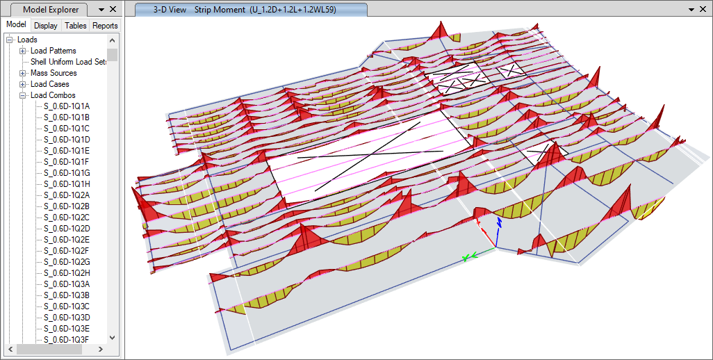 - 板塊(Slab panels)是一種新型的建模對(duì)象,它可以基于軸網(wǎng)或支承線自動(dòng)生成,也可以由用戶繪制。它們依附在樓板體系,借助板塊可以施加用于分析活荷載不利布置的活荷載分布樣式,也可用于提取中間板塊位移和土壓力的數(shù)據(jù)報(bào)告