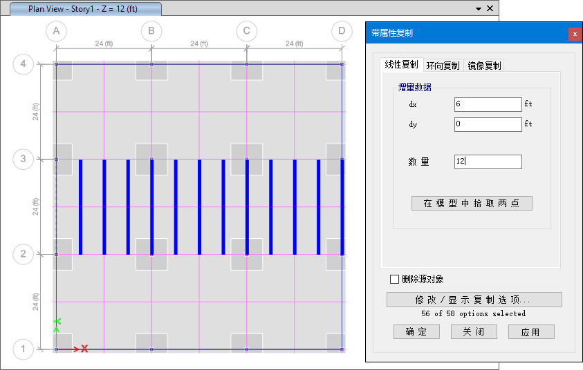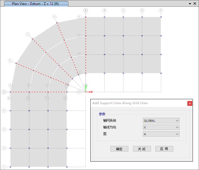 - 新增支承線功能,以便于更快地創(chuàng)建設(shè)計(jì)板帶和鋼束布局??梢栽谄聊淮翱谥兄苯永L制和編輯支承線,也可以沿軸網(wǎng)線自動(dòng)生成