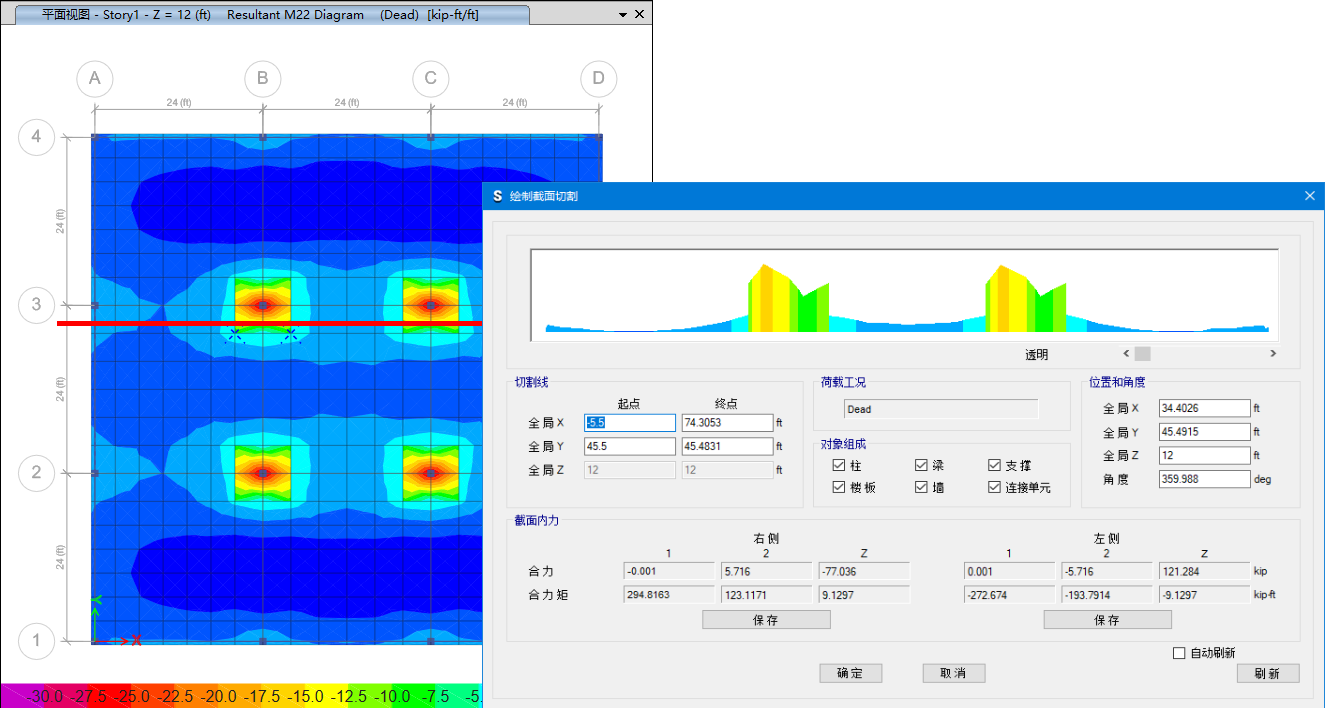 - 可以以圖形方式繪制截面切割,快速顯示切割對(duì)象上的合力和合力矩