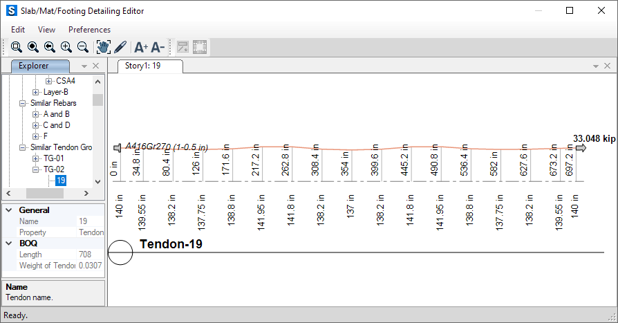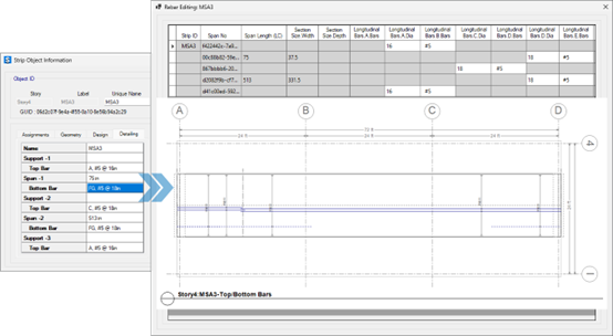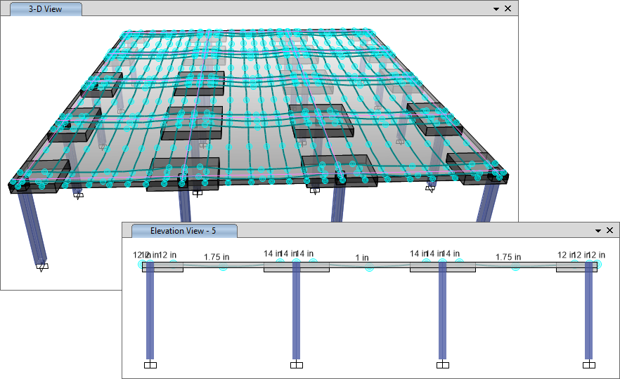 - 完善了混凝土板和梁的詳圖功能,增加了后張預(yù)應(yīng)力(PT)鋼束剖面圖。這包括在板配筋的3D視圖中顯示鋼束和張拉端,以及在梁立面圖和斷面圖中顯示鋼束剖面